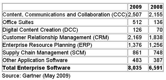 (13.05.09) - Der weltweite Markt für "Software as a Service" (SaaS) soll nach Einschätzung von Gartner 2009 (Gartner-Report "Market Trends: Software as a Service, Worldwide, 2009-2013") die Größenordnung von 9,6 Milliarden Dollar erreichen. Dies ist eine Zunahme von 21,9 Prozent gegenüber 2008. Im letzten Jahr beliefen sich die Umsätze auf 6,6 Milliarden Dollar. Gartner rechnet damit, dass der SaaS-Markt bis 2013 ein konstantes Wachstum aufweisen wird. 2013 ist mit SaaS-Umsätzen im Bereich Unternehmensapplikationen in Höhe 16 Milliarden Dollar gerechnet.