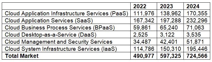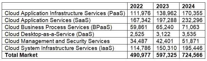 Worldwide Public Cloud Services End-User Spending Forecast (Millions of US Dollars)