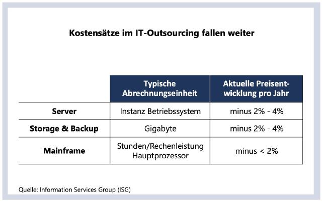 Die Preise für viele klassische Serviceeinheiten im IT-Outsourcing sinken derzeit, Bild: ISG