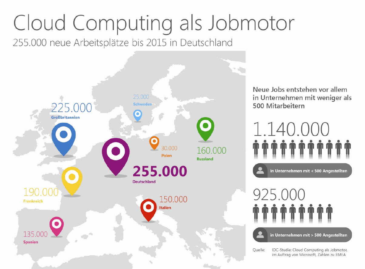 IDC prognostiziert bis 2015 in Deutschland gut 250.000 Arbeitsplätze durch Cloud Computing