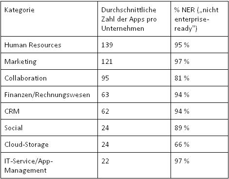 Mehr als 90 Prozent der in Unternehmen genutzten Cloud-Apps sind nicht "enterprise-ready"