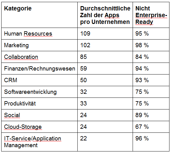 Durchschnittlich genutzte Cloud-Anwendungen nach Branchen und App-Kategorien