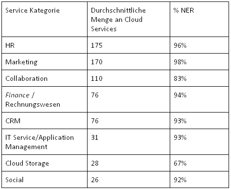Durchschnittliche Anzahl von Cloud-Diensten in Unternehmen nach Kategorie
