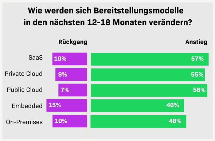 Angesichts der nach wie vor angespannten Wirtschaftslage suchen Anbieter verstärkt nach neuen Lizenzierungsstrategien und Möglichkeiten der Monetarisierung. Software-Abos und nutzungsbasierte Modelle gelten hier als vielversprechend und werden sich laut 59 Prozent der Befragten in den nächsten Jahren weiter ausbreiten.
