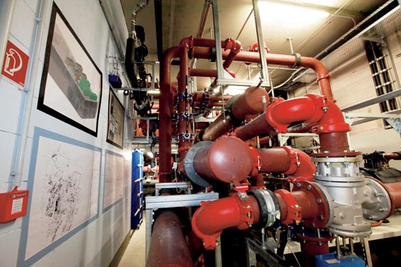 Hohe Kälteerzeugung und -verteilung auf kleinem Raum. Die Kühlleistung entspricht der von 12.500 Kühlschränken. Der Raum ist 50m2 groß.