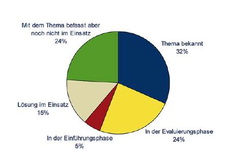 Cloud Services, wie beispielsweise Software-as-a-Service (SaaS) oder Storage-as-a-Service (StaaS), vereinfachen die Nutzung von Anwendungen und ermöglichen flexiblere Dienstleistungen. Laut einer europäischen IDC-Anwenderumfrage im Herbst 2008 nutzen 15 Prozent der befragten 600 Unternehmen Online Storage-Dienstleistungen. Nahezu ein Viertel der Befragten nimmt die neuen Möglichkeiten gezielt unter die Lupe (siehe Abbildung).