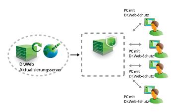Die Multi-Plattform-Architektur der Server-Software erlaubt den Einsatz sowohl von Windows als auch von Unix-basierter Computer als Server - ein deutlicher Vorteil gegenüber anderen Antivirus-Systemen. Der Dr.Web-AV-Desk-Antivirus-Server wird auf einem der Netzwerk-Computer installiert. Hierbei enthält der Antivirus-Server ein Distributions-Kit von Antivirus-Paketen für verschiedene Betriebssysteme und entsprechende Updates der Antivirus-Datenbanken. Darüber hinaus beinhaltet die Lösung Upgrades von Antivirus-Paketen und Konfigurations-Dateien für die Pakete der geschützten Computer und sendet sie auf Anforderung des mitgelieferten Agentenprogramms, dem betreffenden Rechner zu. Die Datenbank des Antivirus-Servers speichert die Einstellungen jedes geschützten Kundenrechners, dessen Statistiken und andere nützliche Informationen.