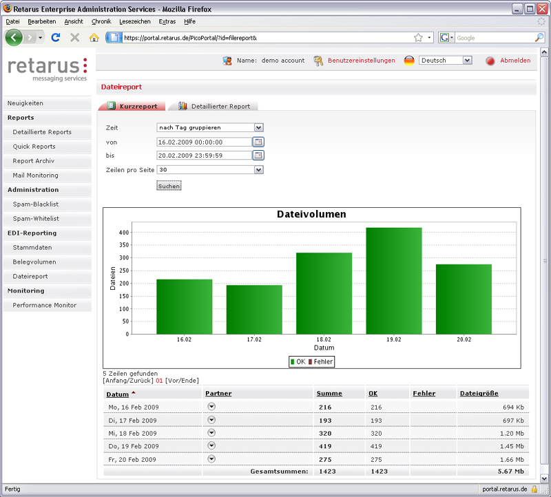 Online-Reporting über das EAS-Portal: Kunden können bequem auf statistische Daten zu allen elektronischen Transaktionen zugreifen, Bild: retarus